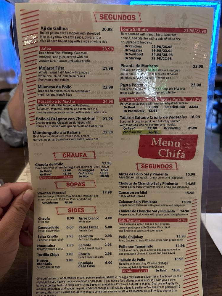 Chicken sauted with French fries, tomatoes, onions, and cilantro with a side of white rice or upgrade to fried rice